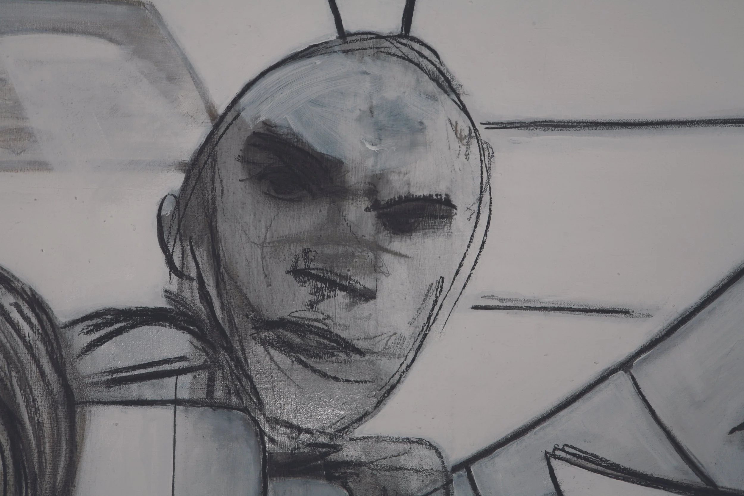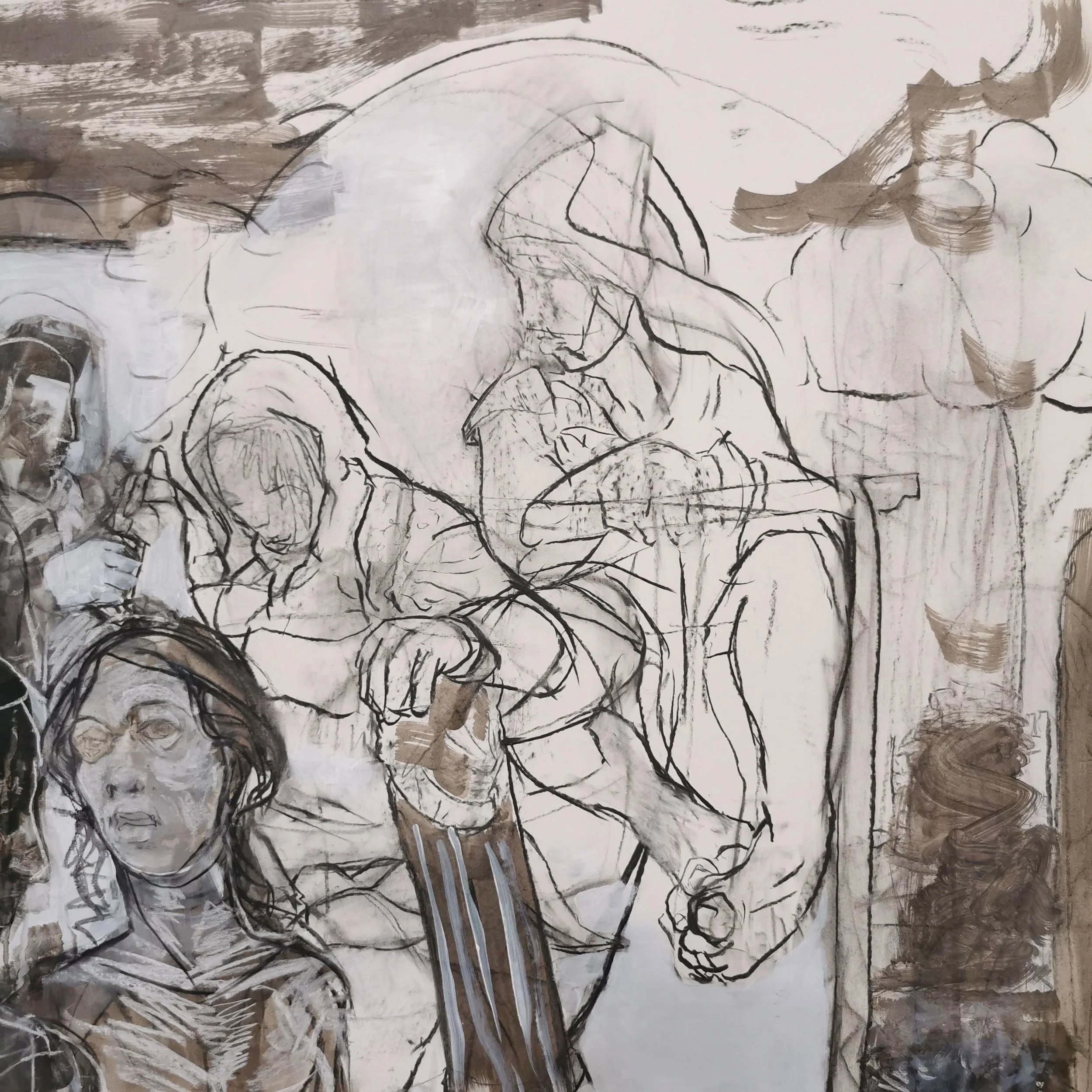 Bath, 2021. Charcoal/Pastelle/Acryl on canvas - detail.