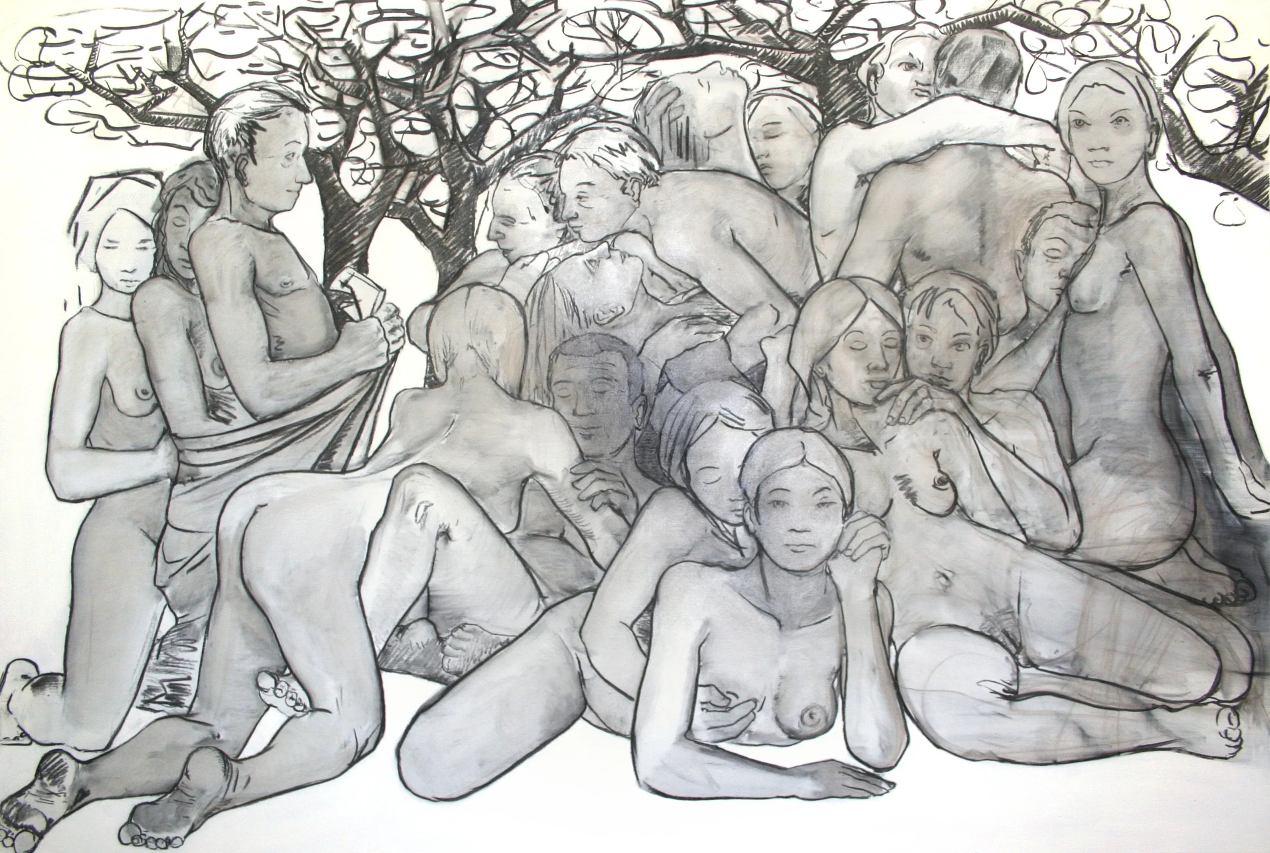 Breakfast under Trees, 2011. Charcoal on canvas - 180 x 120 x 1 cm.