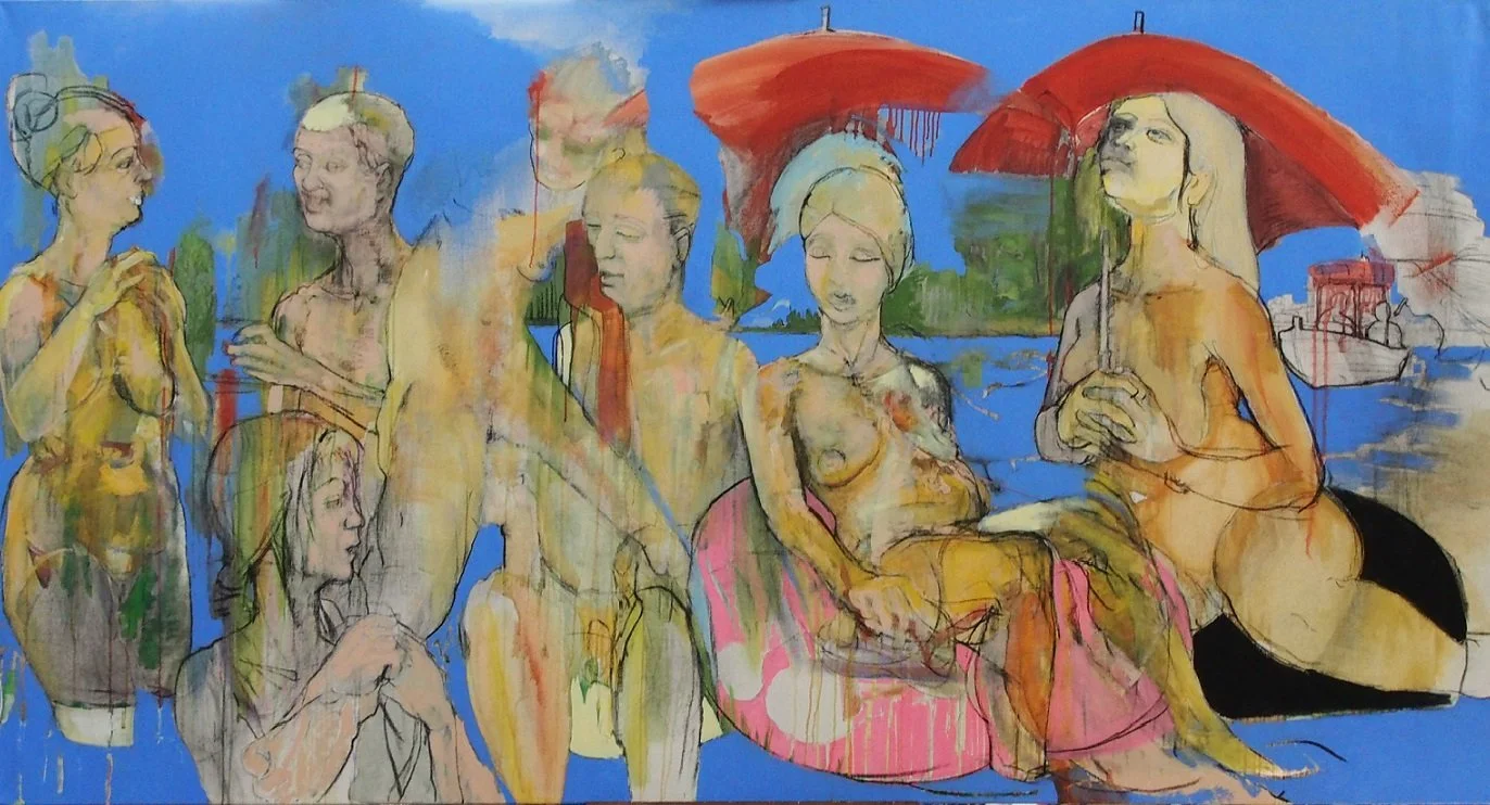 Bathing at the River, 2019. Acryl on canvas - 140 x 260 x 2 cm