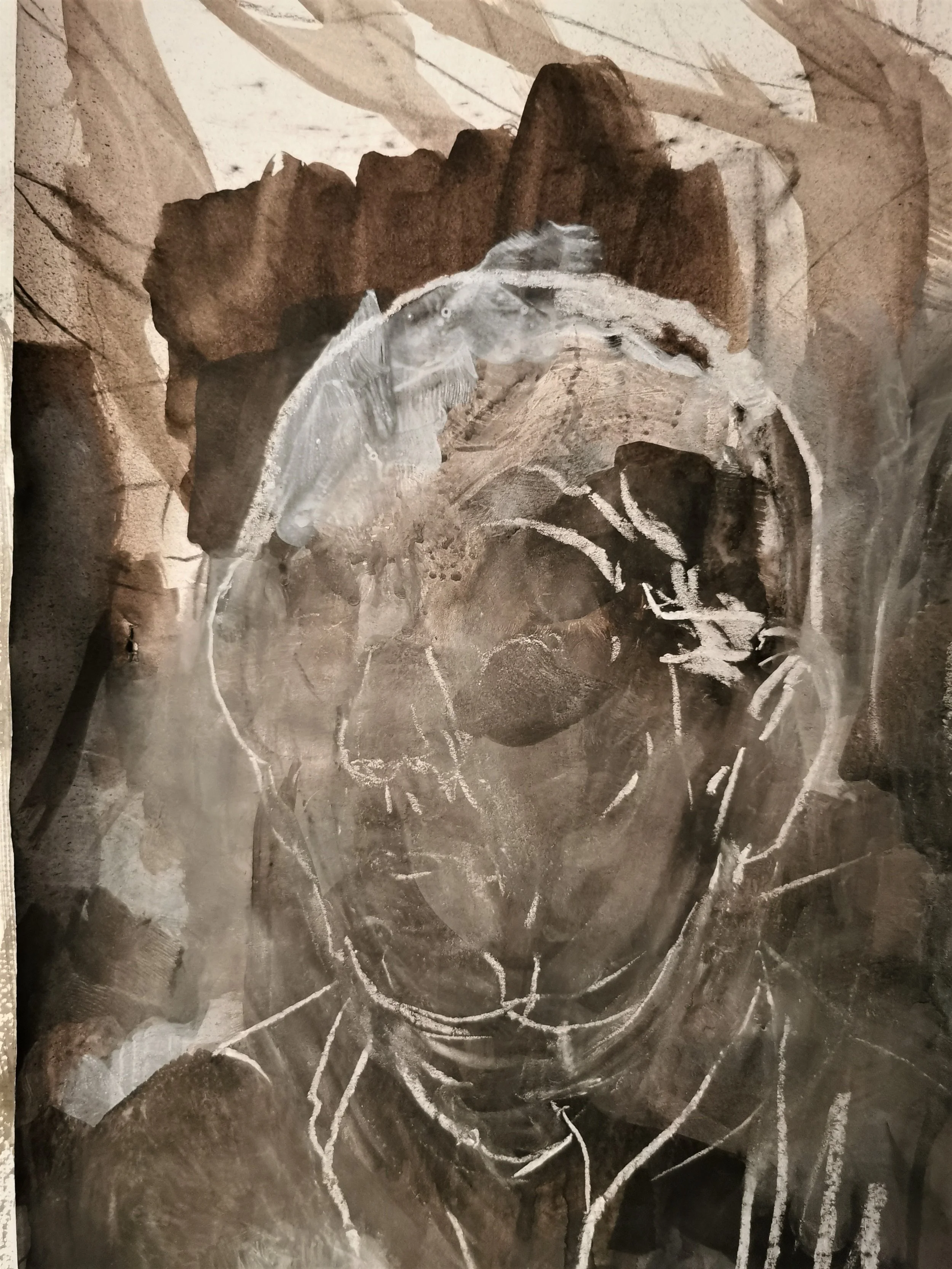 Charon, 2022. Charcoal/Ink on paper - detail.