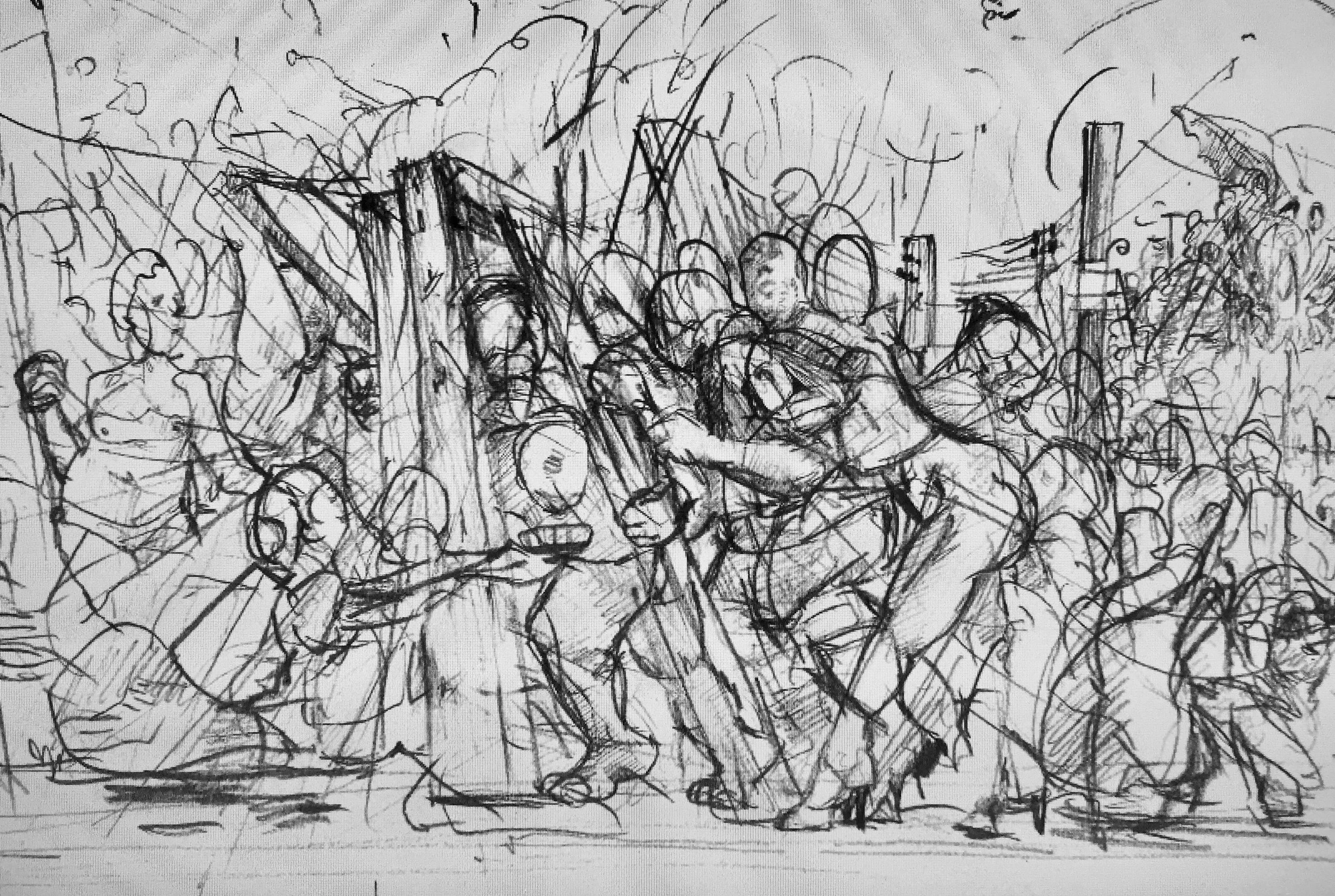 Naked Violence (III), 2014. Charcoal on canvas - 700cm x 210cm
