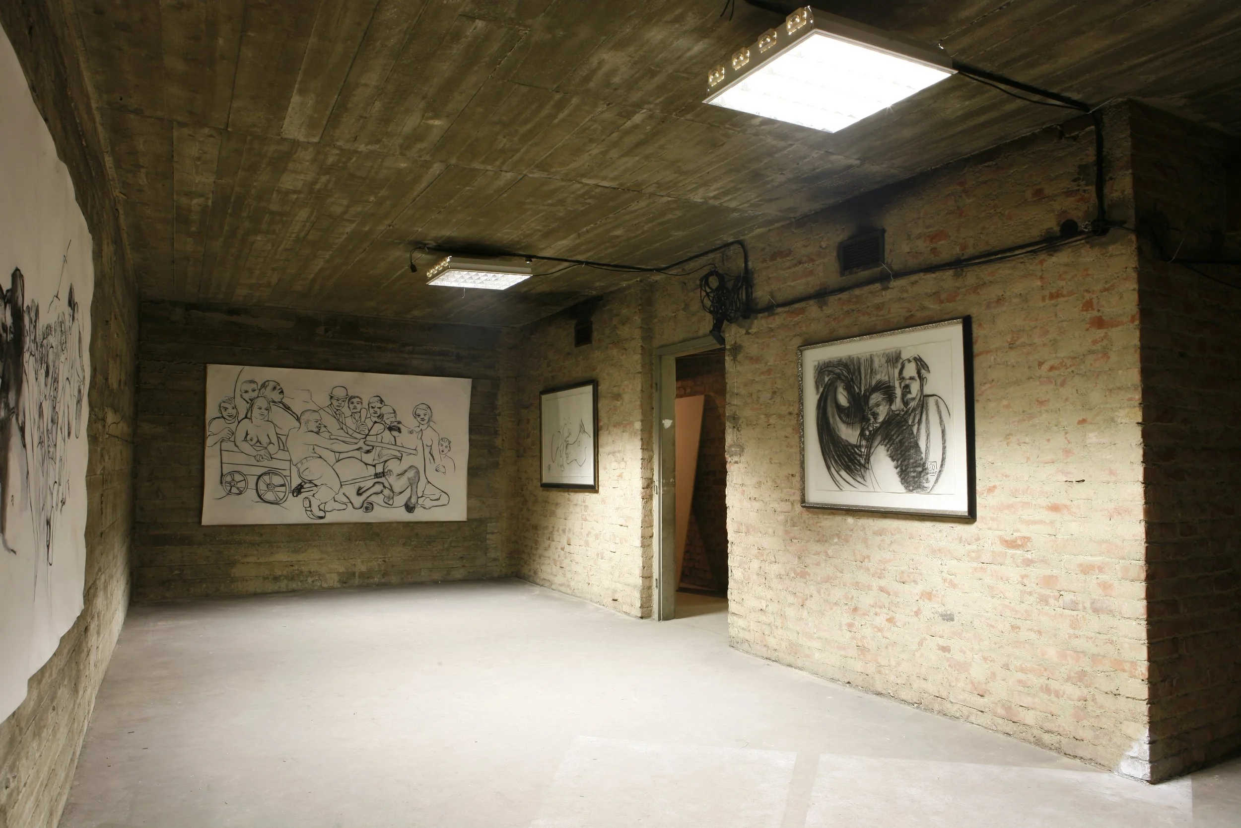Blind Date with Europe, 2006. Charcoal on canvas - 180 x 300 x 2 cm