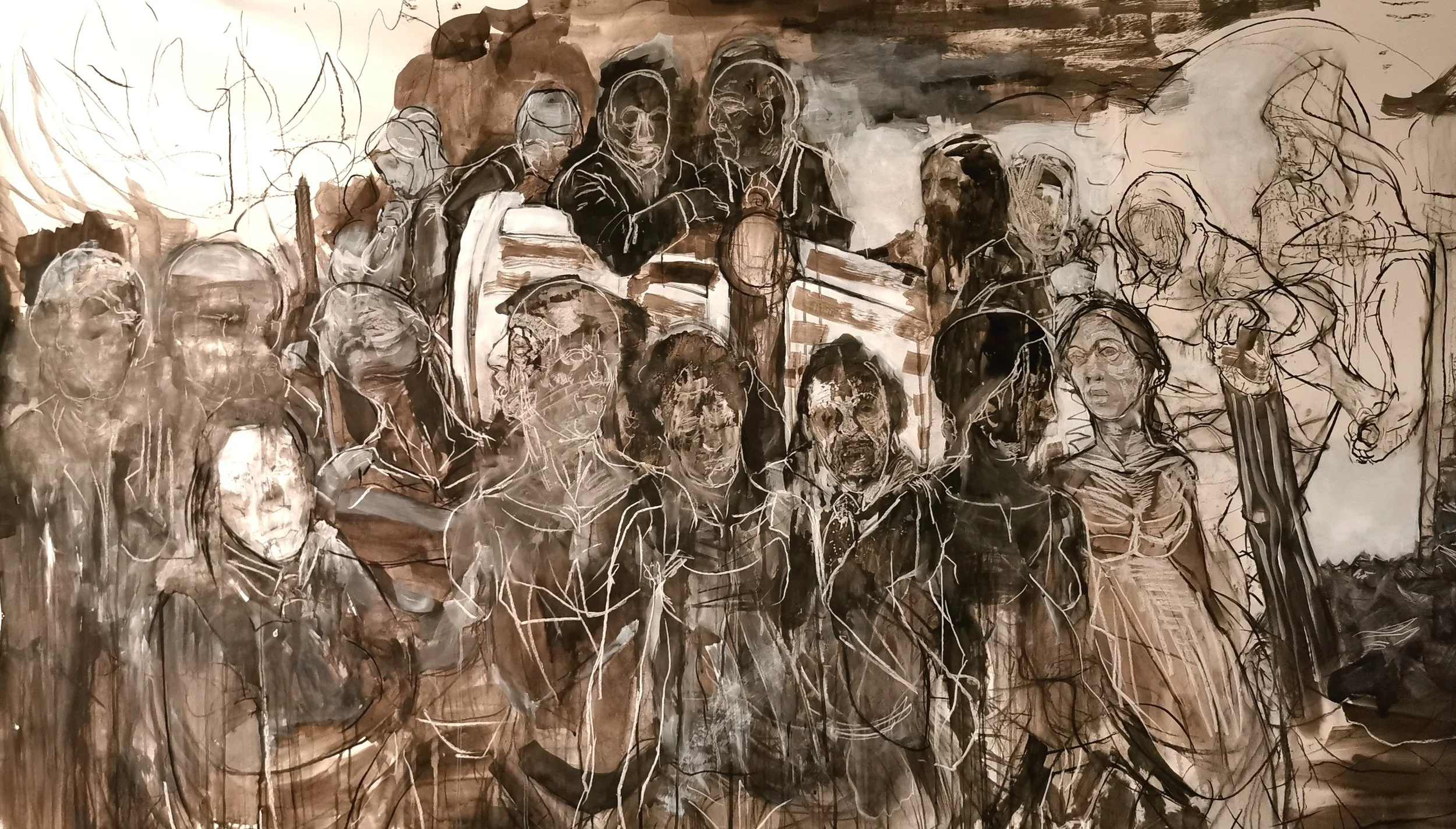 Charon, 2022. Charcoal/Ink on paper - 140 x 260 cm
